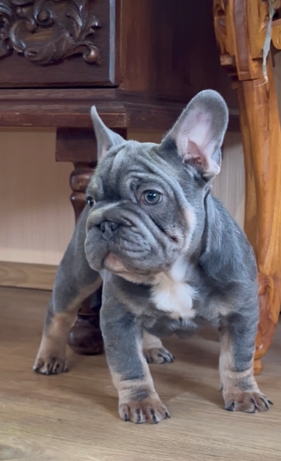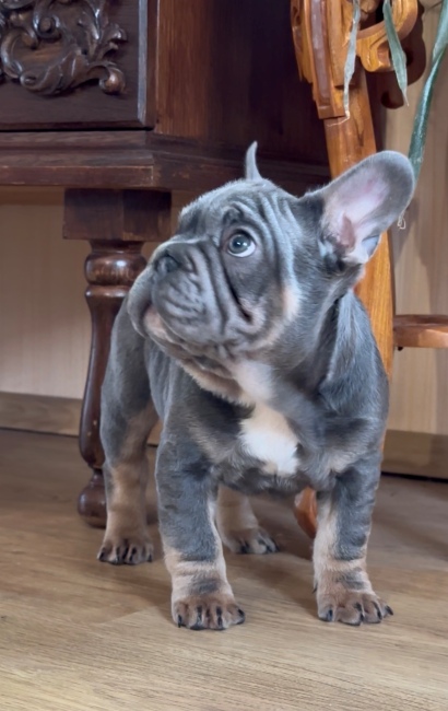 Ez a blue and tan big rope francia bulldog kisfiú olyan megjelenéssel bír, hogy egy pillanat alatt minden tekintetet magára vonz. A vastag, karakteres orrredő, a ritka lilac szín és persze jó légzés valamint a kedves kis arc együtt egyetlen dolgot üzennek: Orion nem egy átlagos kölyök. Orion egy jelenség. Nyitott, kedves, játékos, és imádja, ha foglalkoznak vele. Van benne egy kis elegancia, de ugyanúgy megvan az a tipikus bulldogos mókamester vonal is, amitől lehetetlen nem mosolyogni, amikor a közelben van.